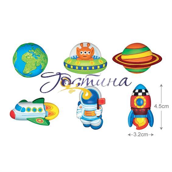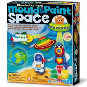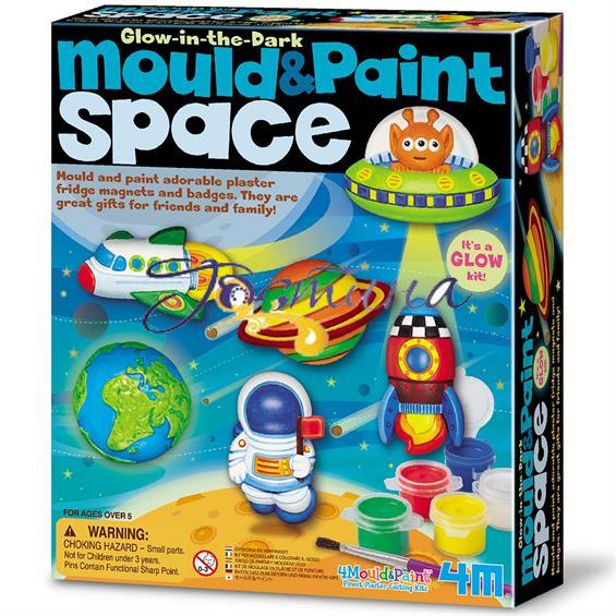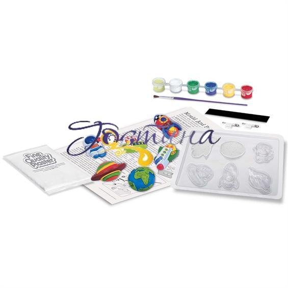 Створіть магніти або значки у вигляді космічних об"єктів із набором для творчості від 4M. Вони можуть сяяти в темряві! У комплекті є все необхідне: пакетики з гіпсом, форми для лиття, баночки з фарбами, світна фарба, пензлик, магніти, безпечні булавки, інструкція.