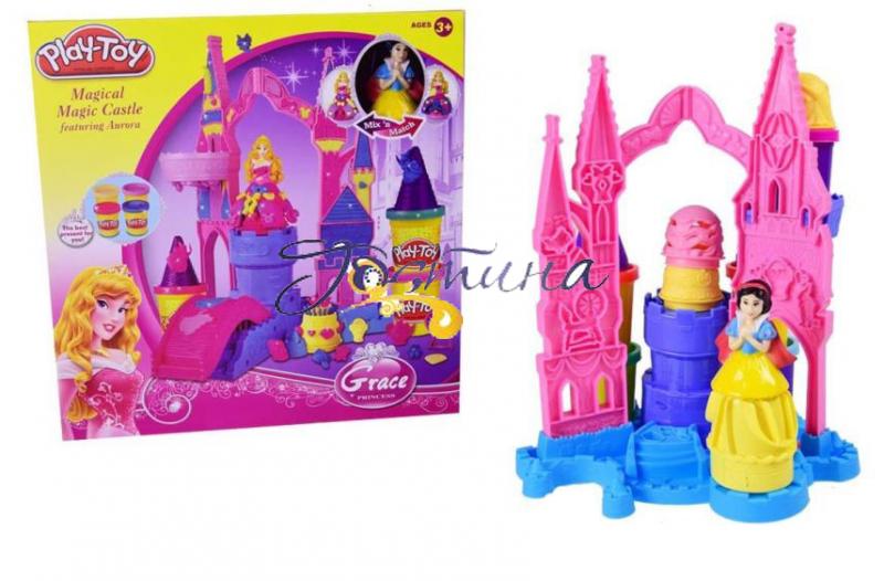 Набір пластиліну "Замок Принцеси"! Набір пластиліну Play-Toy 5 баночок - цей м'який кольоровий пластилін обов'язково сподобається діткамта не дасть пальчикам нудьгувати. З нього можна ліпити різні фігурки. У наборі йдуть формочки для ліплення і м'яке тісто, що не пристає до рук.Якісний дитячий пластилін для ліплення, сприяє розвитку фантазії і творчого мислення. Згодиться для виробів в дитячому садку, школі і вдома. Пластилін має яскраві та насичені кольори. Володіє відмінними пластичними властивостями, добре розминається. Готові вироби відрізняються яскравістю, барвистістю. Такі ігри розвивають посидючість і терпіння, допомагають навчитися концентруватися і підвищують увагу до деталей. Набір допоможе розвинути моторику рук, тренує спостережливість, логічне, образне мислення, знайомить з кольором і різноманітними формами, розвиває довільну увагу дитини. У наборі передбачено 5 баночок з кольоровим пластиліном, а так само лялечка-принцеса зі спеціальними вирізами на сукні та вирізами на замку, які дитина може заповнити різнобарвним пластиліном. Дитина може запросто змінити наряд лялечці, просто замінити пластилін, прикрасивши плаття по-іншому. Заняття ліпленням розвиває сенсорне сприйняття, дрібну моторику, пам'ять, логіку, мислення і увагу. Якість пластиліну відмінне, цей набір дуже сподобається любителям принцес. В комплекті: 5 баночок з пластиліном для ліплення лялечка-принцеса замок з отворами для прикрашення пластиліном інші аксесуари для гри Упаковка: картонна коробка Вік: від 3-х років Розмір упаковки: 28 см × 6 см × 31 см