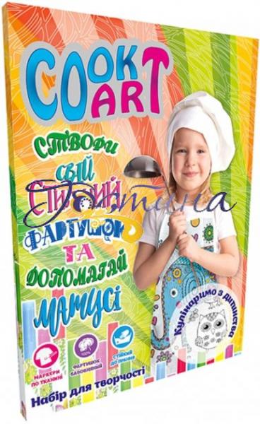Набір для маминих помічників, у якому є бавовняний фартушок (основа під розмальовку, набір яскравих маркерів). За допомогою фломастерів дитина створює стильний фартух, у якому приємно і гратися, і допомагати батькам. Розмальовувати фартушок цікаво, заняття до душі й хлопчикам, і дівчаткам.