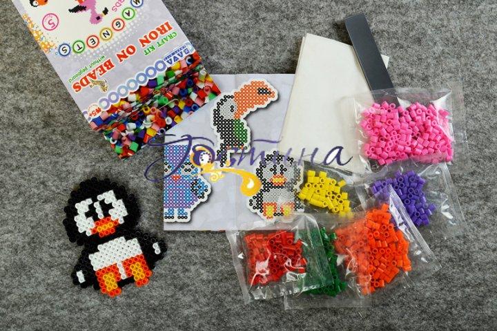 За допомогою нашого набору Ви зможете зробити 5 яскравих і барвистих магнітів із термомозаїки.