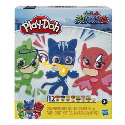 Ваша місія: створити своїх героїв в масках! У цьому Наборі Play-Doh PJ Masks 425 г є всі необхідні інструменти і кольору, щоб діти могли зліпити Кетбоя, Олетт і Гекко. Це легке і захоплююче творче заняття з інструментами для штампування з колірною гамою для кожного героя, покрокові інструкції та 12 баночками нетоксичного пластиліну Play-Doh. Набір PJ Masks стане чудовим творчим подарунком на свято або день народження для маленьких шанувальників серіалу! У комплекті: 3 штампа для тіла, 3 штампа для деталей, 3 штампа для особи, валик, ніж та 12 баночок з масою для ліплення Play-Doh.