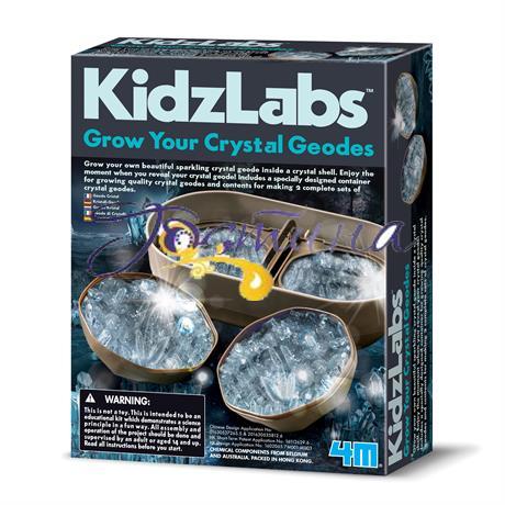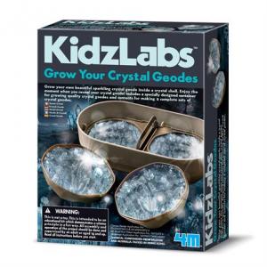 Створіть у себе вдома печеру зі справжніми кристалами! Ваші скарби будуть виглядати як жеоди – мінеральні утворення округлої форми, всередині яких ростуть кристали. Природні жеоди видобувають у горах і розколюють навпіл, щоб побачити красиві переливи кристалів усередині каменів. Із набором для досліджень від 4М ви зможете виростити жеоду самостійно, не виходячи з дому.
