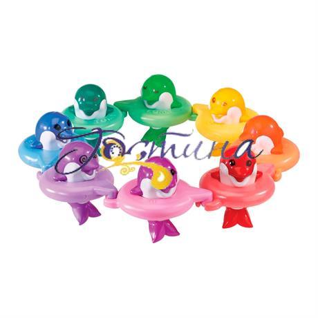 Виставляйте іграшкових дельфінів по колу або до ряду. Переставляйте їх у різній послідовності, щоб зіграти новий ритм. Дельфінчиків можна дістати і грати ними окремо, дозволивши вільно плавати.