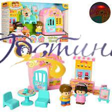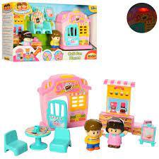 Даний набір пропонує вашій дитині побути в ролі власниці кафе, відвідувачами якого будуть її улюблені лялечки або тваринки. Вона, як гостинна господиня, буде зустрічати і пригощати їх солодощами і ароматною кавою. У наборі є багато меблів і різних аксесуарів, які допоможуть створити справжнє кафе, де іграшкові відвідувачі зможуть смачно пообідати чи повечеряти. Будиночок-фасад кафе з привітно відкриваються дверима, стійка з солодощами, кавою та касовим апаратом, затишний столик з кріслами роблять заклад комфортним і бажаним для гостей. Їм сподобається інтер'єр кав'ярні, виконаний у приємно-барвистих тонах. Обслуговувати їх будуть офіціанти – в комплект входять фігурки хлопчика і дівчинки в яскравих нарядах. Дитині залишиться лише віддавати їм накази, які будуть виконуватися негайно. Дівчинка із задоволенням проводити час за такою грою, придумуючи для своїх героїв і для себе цікаві ролі та історії. Особливій реалістичності додають звукові та світлові ефекти, які урізноманітнюють процес захоплюючої гри. Подібні сюжетно-рольові ігри корисні для придбання необхідних навичок, а також розвитку дрібної моторики рук, координації рухів, фантазії і творчої уяви дитини. Виконаний ігровий набір з якісного міцного пластику, тому довго прослужить дитині.