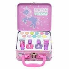 Набір косметики Martinelia Мрії єдинорога кейс сподобається маленькій красуні. Підійде для дівчаток, які люблять наводити красу. Косметику зручно зберігати та транспортувати у металевому кейсі з ручкою, який оснащений спеціальними відділеннями для кожного елемента. У наборі: 2 лаки для нігтів; 2 блиску для губ; 11 відтінків тіней для повік. Матеріали, з яких виготовлена косметика, є абсолютно безпечними для дитячого здоров'я. Косметика має приємний аромат і блискітки. Гра з набором Martinelia розвиває творчі здібності, дрібну моторику та уяву. Рекомендовано для дітей віком від 5-ти років.