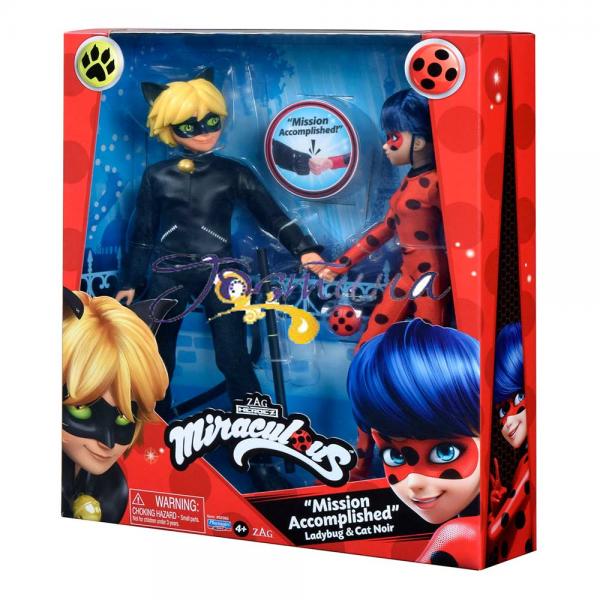 Набір ляльок Miraculous Леді Баг і Супер Кіт S2 Місія виконана — чудовий подарунок для дитини, яка захоплюється мультфільмом про Леді Баг. Леді Баг і Супер-кіт — це герої однойменного мультика, які борються за добро у світі. Станьте на їх сторону, щоб їм допомогти. В долонях іграшок є магнітики і при їх дотику можна почути звук удару кулачків. У наборі: фігурка Леді Баг висотою 26 см; фігурка Супер-кота висотою 26 см; аксесуари (жезл, йо-йо, взуття, комплект долонь з магнітами). Виготовлено із якісного пластику. Гра з ляльками Miraculous сприяє розвитку дрібної моторики, уваги та уяви. Рекомендовано для дітей від 4-х років.