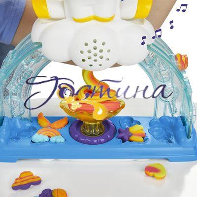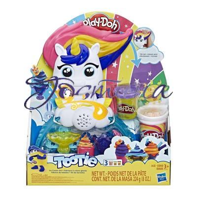 Ігровий набір Play-Doh «Фабрика морозива» познайомить малюків з чарівним Єдинорогом Туті. Казковий герой живе на веселці, де і народжуються неймовірні та барвисті ласощі. Готується морозиво веселим та не зовсім традиційним способом, що дуже потішить дітей. Під час гри єдиноріг видає смішні звуки.