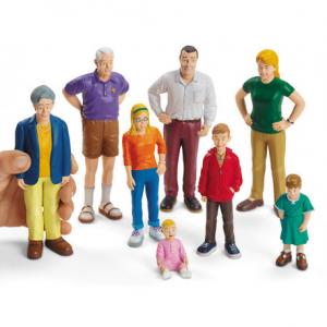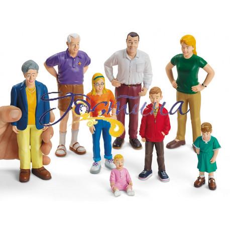 У набір входить 8 барвистих фігурок, серед яких: бабуся, дідусь, мама, тато, хлопчик-підліток, дівчинка-підліток, дитина і малюк. Всі фігурки зроблені з високоякісного пластику, стійкі, максимально деталізовані і реалістичні. Розмір фігурок зручний для дитячих ручок і всі пропорції збережені.