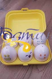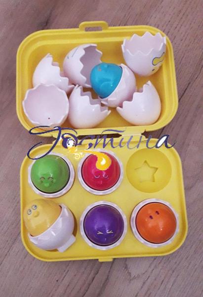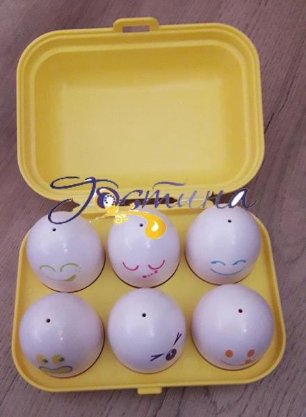 Також на яєчках зображені фізіономії з різними виразами облич — усміхнене, спляче, перелякане, що облизується. А всередині шкарлупок заховані різнобарвні курчатка. Тому в процесі гри малюк фантазує і спілкується з майбутніми пташенятами.