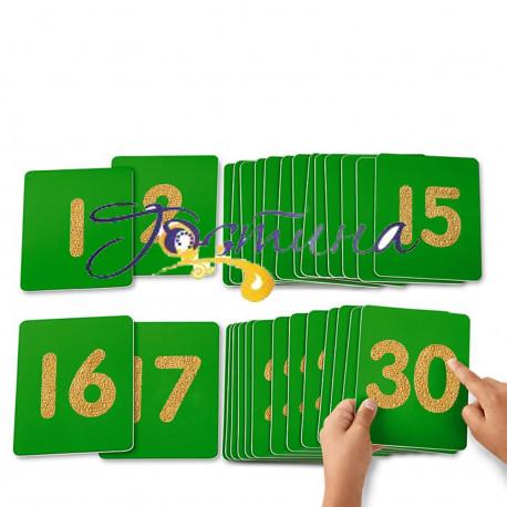 Елементи виготовлені з картону, а поверхня цифр шорстка. Повністю безпечні для дитячого здоров'я. Набір може застосовуватися, як вдома / в школі, так і при навчанні дітей з порушенням зору.