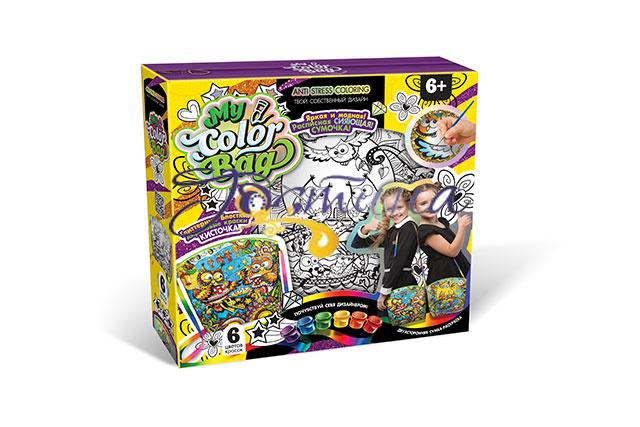 Набір для творчої творчості "My Color Bag". Яскрава розписна блискуча сумочка з плетеними ручками та блискавкою вшитою. Розфарбуй фарбами та прикрась гліттер сумочку за власним дизайном.