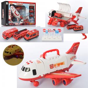 Набір з транспортом 660-A239 пожарна, самолет-гараж31см, машинки7см-металл, дорожні знаки, звук, світло, на бат-ке, в кор-ке. Розмір - 46-31-14см, Матеріал - метал + пластмаса, Тип упаковки - Віконна коробка.
