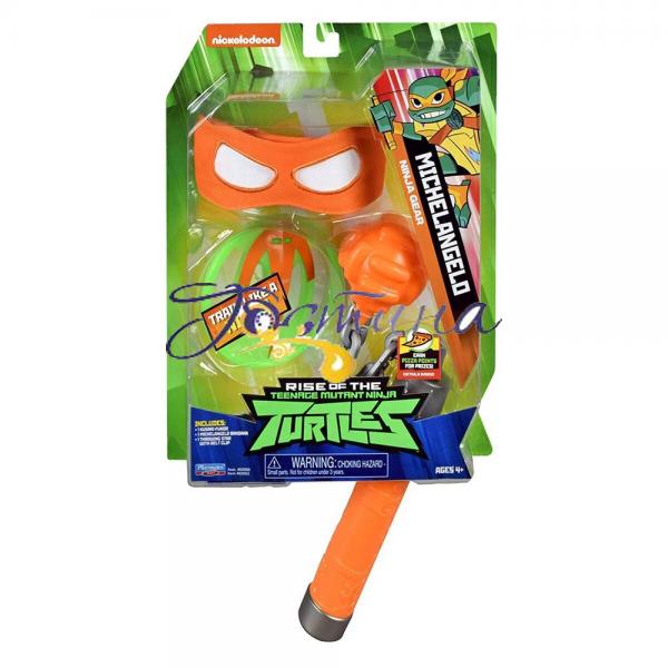 Спорядження Мікеланджело — справжня знахідка для юного ніндзя! Відчуйте себе героєм, адже тепер є можливість перевтілюватися у своїх улюблених персонажів за допомогою бандани, озброївшись їхньою реалістичною зброєю.