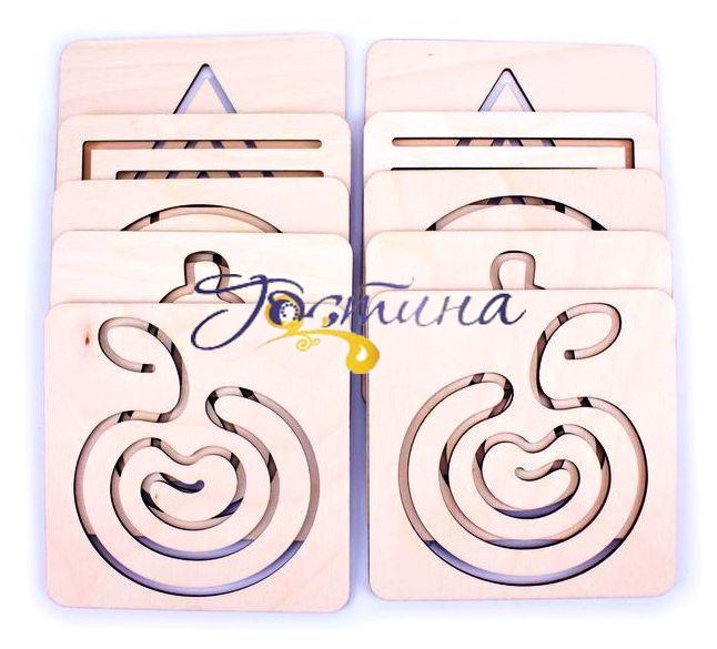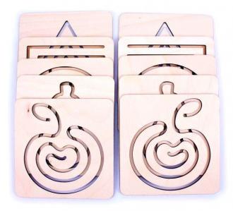 Комплектація: - 10 змінних трафаретів (5 парних трафаретів) У віці 1-1,5 років пропонується вчити малюка проводити стилосом по одному трафарету, тренуючи моторику ручок. Далі малюк промальовує лінії за допомогою простого олівця, працюючи по черзі правою та лівою ручкою. У віці 3-х років малюку пропонується працювати як однією рукою, так і двома руками одночасно (спочатку малюк працює з плавними лініями, поступово переходячи у квадратів та трикутників). Найскладніший етап занять – робота двома руками з трафаретами різного зображення. Таке завдання складно виконати і дорослій людині. Робота одночасно двома руками сприяє розвитку обох півкуль мозку, зміцнює міжпівкульні нейронні зв'язки. Розмір трафарету: