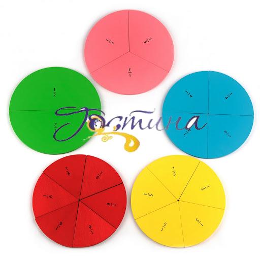Набір виготовлений з деревини. На зворотному боці прикріплені магніти для демонстрації на магнітній дошці. Набір призначений для вивчення поняття «дроби». Складається з наборів кіл, які марковані по його частинах. Має комплектацію:1/2 - 2 шт1/3 - 3 шт1/4 - 4 шт1/5 - 5 шт1/6 - 6 штРекомендовано для довгострокового шкільного використання. Діаметр набору не менше 18 см. Забарвлено європейськими яскравими фарбами на водній основі, цифри нанесені методом шовкографії, завдяки чому дуже довговічні.Повністю відповідає концепції Нової української школи.