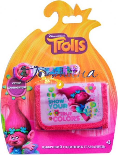 Цифровий годинник і гаманець «Тролі» - дивовижний подарунковий набір! У ньому є милі і симпатичні годинничок, з якими ваша дитина буде відчувати себе набагато впевненіше. Виконані вони у стилі популярного мультика «Тролі». На годиннику зображена головна героїня Розочка, рожевий троль з високою зачіскою. Маючи такі годинники малюк швидше навчиться визначати час, правильно його розподіляти і ніколи нікуди не спізнюватися. Ще в наборі є цікавий гаманець для кишенькових заощаджень. Підійде дітям від 3 років.