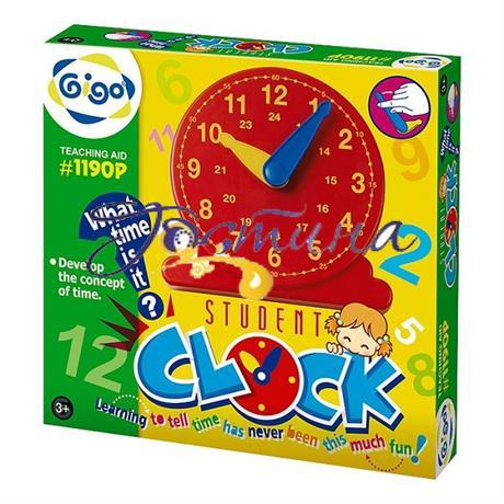 Годинники Gigo діаметром 13 см підходять для навчання дітей розумінню часу. Велика і маленька стрілка годинника з`єднані з шестірнями: коли велика стрілка робить один оборот, маленька переходить на наступну годину. Детальна градація: можна показати 12 годин і 24, а також хвилини: від 5 до 60. Завдяки зручній підставці, годинник можна розташовувати вертикально або горизонтально. Годинник зроблений з якісного безпечного і міцного пластику.Продукція відповідає концепції Нової української школи та має свідоцтво про відповідність педагогічним вимогам МОН України.