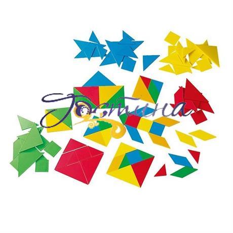 Це стародавня китайська головоломка. У перекладі танграм означає «сім дощечок майстерності». Головоломка складається з семи плоских фігур, які складають певним чином для отримання іншої, більш складної, фігури: зображення людини, тварини, предмета домашнього вжитку і т. Д. Фігура, яку необхідно отримати, при цьому зазвичай задається у вигляді силуету або зовнішнього контуру . При вирішенні головоломки потрібно дотримуватися дві умови: перше - необхідно використовувати всі сім фігур танграма, і друге - фігури не повинні перекриватися між собою. Включає п'ять комплектів по 21 елементів п'яти кольорів.