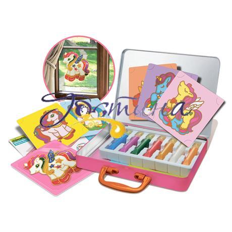 Прикрасьте свої вікна вітражами, які будуть гарно переливатися на сонці та заповнювати кімнату різнокольоровими променями! Набір для творчості від 4М допоможе вашій дитині відчути себе справжнім художником-вітражистом.Для початку створіть настрій творчої майстерні: розкладіть на столі вітражні фарби й оберіть єдинорога, якого хочете намалювати. Потім помістіть на вибране зображення прозорий пластиковий лист і почніть малювати поверх нього, копіюючи зображення. Залиште малюнок висихати на ніч. Зранку обережно відділіть його від пластикового листа і прикріпіть на вікно або будь-яку іншу гладку поверхню.Набір із серії ThinkingKits допоможе дитині розвинути тактильні відчуття, дрібну моторику, творчі здібності та поліпшити сприйняття кольорів.У наборі:Вітражні фарби – 6 шт.Золотий маркер – 1 шт.Прозорий пластиковий лист – 1шт.Шаблони зображень – 6 шт.Інструкція – 1 шт.