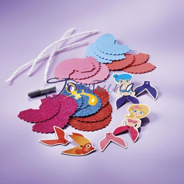 Набір для творчості «Русалки» (арт. 021 068) від ТМ Totum подарує маляті неймовірні враження від створення чарівних русалочок. Щоб виготовити двох веселих морських принцес, виробник зібрав в коробочці 2 заготовки з картону, хвостики яких можна прикрасити мереживом зі спіненого полімеру і блискітками. Клей в наборі також з мерехтливими частинками, що дозволить святково прикрасити фігурку у всій її площі. Набір допоможе розвивати фантазію, навчить поєднувати кольори і форми, висловить переваги в стилі і моді.