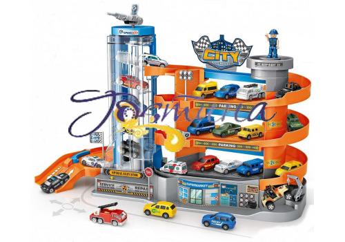 Триповерхова модель парковки E 7003 стане прекрасним подарунком для будь-якого хлопчика, який обожнює оригінальні іграшки. Парковка виконана в сучасному дизайні і поєднує в собі яскравий помаранчевий колір з синім. Іграшка виготовлена ??з первинної пластмаси і повністю безпечна для дитячого здоров'я. Парковка складається з 3х поверхів, де на кожному є місце під установку цікавих додаткових компонентів: ліхтар, кран, гармата. Збоку розташовується гвинтові платформи для машин, а з іншого боку спуск і підйом з першого на третій поверх. У комплектацію входить: - парковка; - моделі машин; - наклейки; - додаткові аксесуари.