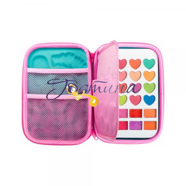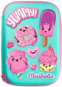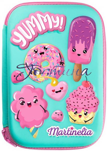 Якщо маленька обожнює створювати нові образи, то їй обов'язково сподобається набір косметики Yummy в кейсі від бренда Martinelia. У яскравому бірюзовому пеналі є різнобарвні тіні та бальзами для губ. На обкладинці зображені апетитні десерти. Багатий вибір кольорів допоможе створити безліч нових образів і розвинути почуття стилю. Косметика зроблена з гіпоалергенних матеріалів і абсолютна безпечна для дітей. Пенал можна також використовувати для шкільного приладдя.