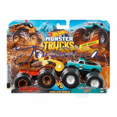 Набір з 2-х машинок Hot Wheels Monster Trucks представляє собою дует для крутих та потужних перегонів. У комплекті дитина знайде позашляховики Loco Punk та Pure Muscle. Кожна справжня модель складається з корпусу, встановленого на величезних колесах (заввишки більше 66 дюймів). Вага гігантів становить близько 5 тонн. Вони можуть генерувати потужність до 2000 кінських сил та розвивати швидкість до 160 км/год. Розганяючись, вони буквально перелітають перешкоди та відстань в 38 метрів. Яскравий, оригінальний та трохи агресивний дизайн машинок не залишить байдужими юних автолюбителів. Рекомендовано для дітей від 3-х років.