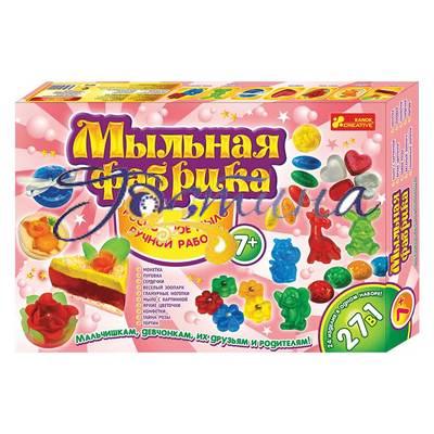 Набір Мильна фабрика допоможе приготувати розкішне мило своїми руками! Набір для творчості та гарного настрою подарує багато приємних та захоплюючих хвилин дівчатам, хлопцям, друзям і батькам! В комплекті: - монетки, - ґудзичок, - серденька, - веселий зоопарк, - гламурні нігтики, - мило з картинкою, - яскраві квіточки. - цукерка, - таємниця троянди, - тортик.