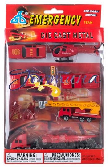 Набір складається із 10 елементів :6 міні моделей , світлофор та 2 фігурки пожежників