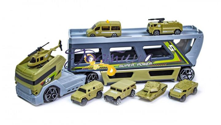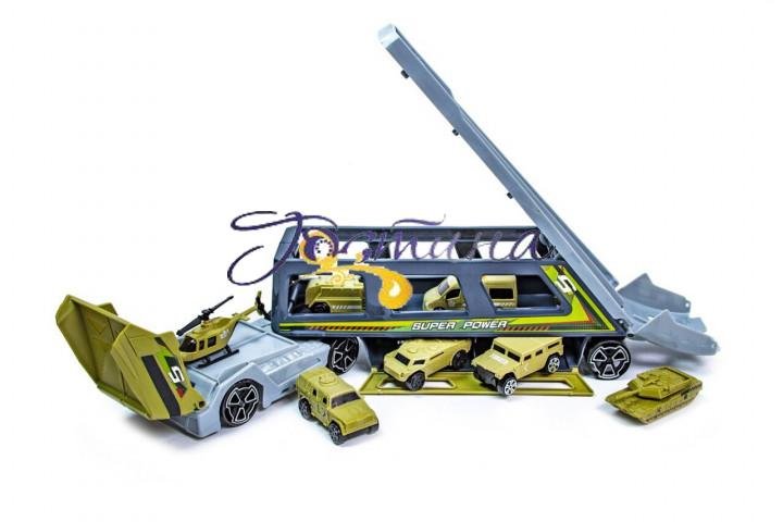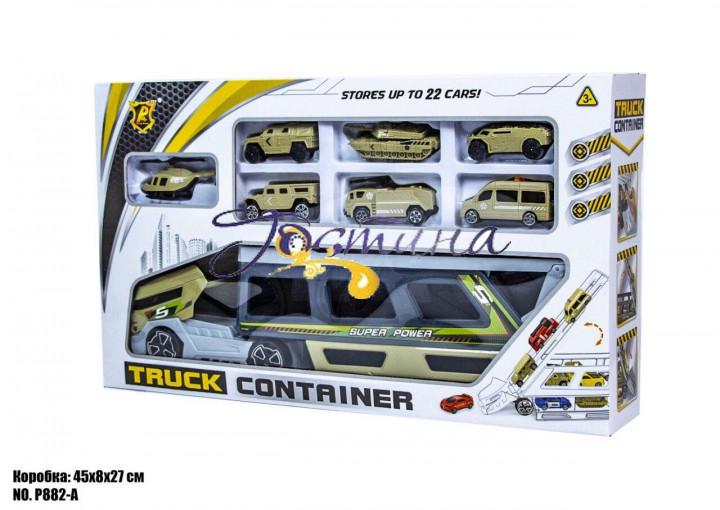 Набір військової техніки P882-A У набір входить Фура-вантажівка, яка перевозить військову техніку. Вона ж служить мобільного базою для військової техніки. У комплект входить фура і 7 одиниць військової техніки.