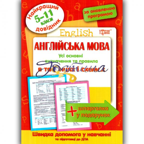 Найкращий довідник Англійська мова у таблицях і схемах 5-11 класи Авт: Погожих Р. Вигляд: Торсінг укладено відповідно до чинної оновленої програми загальноосвітньої школи.