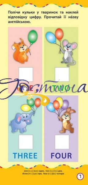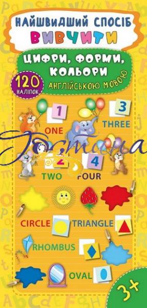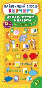 З книгою "Самий швидкий спосіб вивчити цифри, форми, кольори англійською мовою" ваша дитина легко і швидко запам'ятає назви цифр, геометричних фігур і кольорів англійською мовою, потренується читати і перекладати слова, а також складати їх з наклейок.