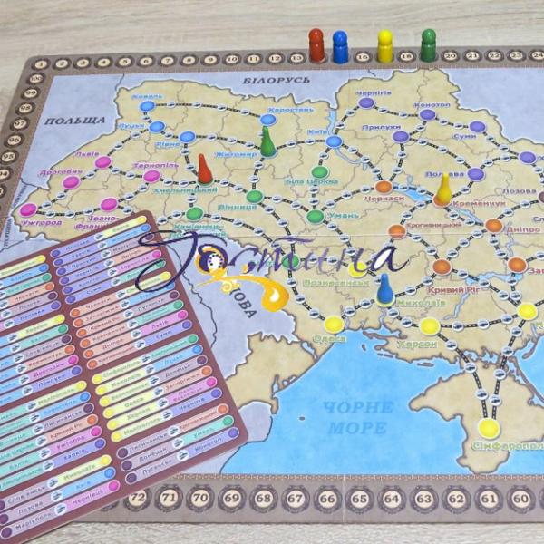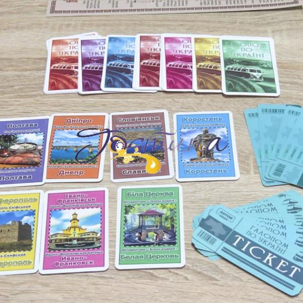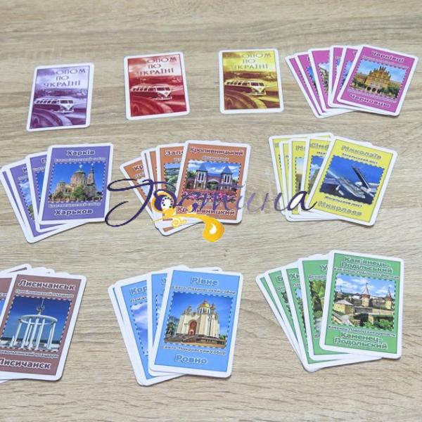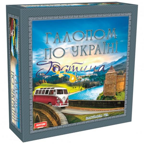 Настільна гра «Галопом по Україні» від українського виробника "Artos Games" дійсно відповідає своїй назві. Гравцям необхідно буде якнайшвидше пройти маршрут містами України, який вони самі складуть. При цьому вони будуть здійснювати переїзди між містами, а також рухатись автостопом від міста до міста. В результаті відвідувань міст України, які будуть у їхньому маршрути, гравці набиратимуть рейтингові очки мандрівника. Мета гри – набрати 100 очок в рейтингу мандрівника. Комплектація:- Ігрове двостороннє поле – 1 шт. - Гральні фішки – 4 шт. - Фішка-маркер – 4 шт. - Картки міст – 42 шт. - Залізничні квитки – 16 шт. - Планшети рейсів на українській мові – 4 шт. - Планшети рейсів на російській мові – 4 шт. - Правила гри.