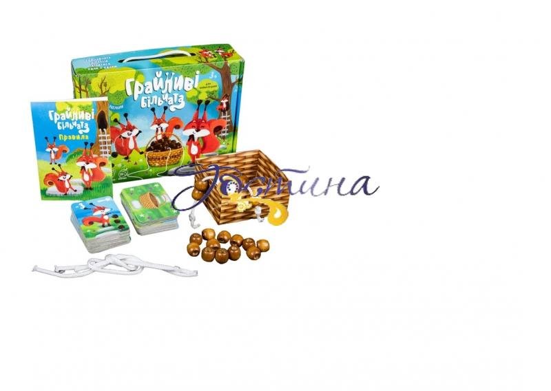 Кожен гравець має свою доріжку, яка веде до кошика з горішками. І мета гри зібрати якомога більше горішків нанизуючи їх на свою ниточку. Але доріжка така непередбачувана: тут ти зібрав 3 горішки, а тут тобі потрібно поділитися з другом. Виграє той, хто зібрав найбільший запас горішків. «Грайливі більчата» – це гра, що вчить рахувати, бути уважним, посидючим і добрим, адже в кінці гравці зможуть розділити горішки порівну між собою, щоб усім вистачило запасів на зиму. А намистини, нанизані на ниточку, стають відмінним способом для розвитку дрібної моторики рук. «Грайливі більчата» Strateg (30852) – це найкраща гра для молодшого дошкільного розвитку. ♦ Рекомендований вік гравців: від 8 років; ♦ Размір пакування: 27,7х18,3х5,8 см; ♦ Комплектація гри: 24 шт. картонних карток, 28 дерев'яних намистин, 4 тканинні канатики, 1 картонний кошик, паперова інструкція. ♦ Вага гри в коробці: 300 г (+-20 г) ♦ Кількість гравців: 2-4. Гра українською мовою.