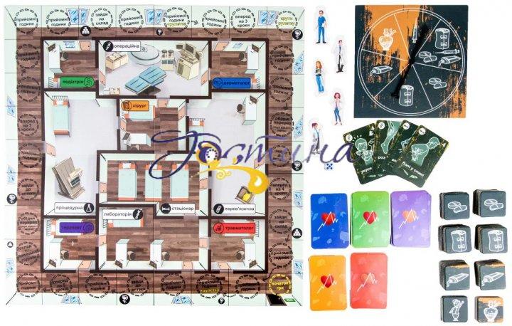 Гра «Doctoring» – це шанс відчути себе лікарем та допомогти пацієнтам подолати їхні хвороби. У розпорядженні гравців є ігрові жетоні з ліками, ігрове поле-лікарня та картки з пацієнтами. Особливо запам'ятовується картка з веселою бабулькою, яка може з'явитися будь-якої миті гри. У «Doctoring» цікаво грати підліткам та дорослим, вона дозволяє і помагатися між собою, і весело провести час із друзями. Будьте уважні та перемогти буде легко. Вік: 10+. Кількість гравців: 2-5. Комплектація: гральні картки – 55 шт., жетоні – 140 шт., гральні фішки – 5 шт., гральне поле, рулетка, гральний кубик, інструкція.