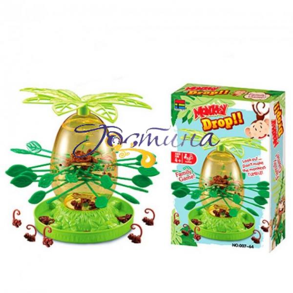 Настільна гра "Веселі мавпочки" призначена для 2-5 гравців, віком від 4-х років. Гра являє собою пластиковий екзотичний фрукт з декількома отворами. Перед початком гри у ці отвори встромляються гілочки, а зверху на них розміщуються мавпочки. Починає гру наймолодший гравець. Йому необхідно витягнути одну з гілочок таким чином, щоб мавпочка не впала вниз. Всіх впали мавпочок гравець забирає собі. Наступний хід робить гравець, що сидить зліва від першого гравця. Переможе той у кого в кінці гри буде мінімальна кількість мавпочок. Весела гра для дітей. Розвиває посидючість, уважність, логіку. Ваші діти будуть весело проводити час в компанії з друзями або в колі сім'ї.