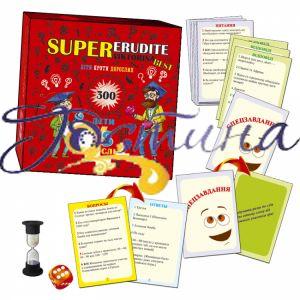 Захоплива гра–вікторина для всієї родини. Чудове тренування інтелекту і кмітливості. 300 найрізноманітніших запитань і відповідей на них + спецзавдання. Грати можна російською або українською мовою. Перевіряйте свої знання, дізнавайтеся нове і цікаве. Гра підійде для будь-якого віку. Комплектація: ігрові картки (запитання + відповіді) — 100 шт.; картки спецзавдань — 10 шт.; кубик гральний — 1 шт.; пісочний годинник — 1 шт.; правила гри українською та російською мовами. Видавництво Майстер