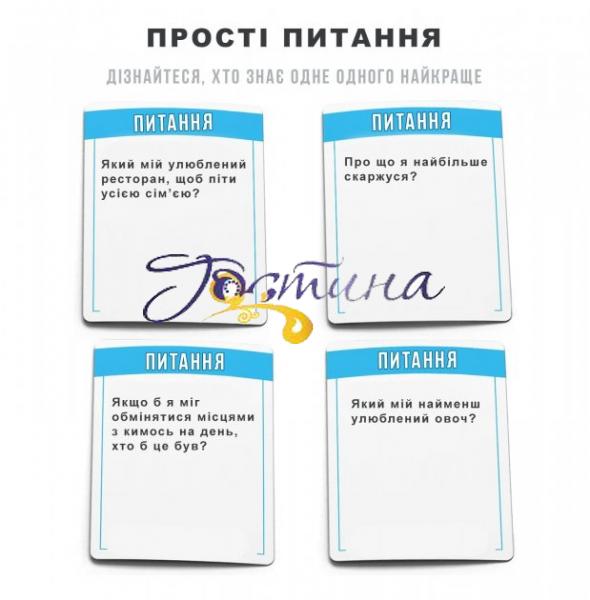 ГРА, ЯКА ВИВЕДЕ СТОСУНКИ НА НОВИЙ РІВЕНЬПриготуйтесь до найкращої сімейної ігрової ночі, коли ви смієтесь і дізнаєтесь одне про одного за допомогою цієї веселої карткової гри.