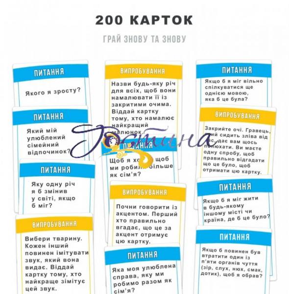 Створюйте нові сімейні спогади виконуючи безглузді завдання разом. Ця карткова гра неодмінно стане улюбленою грою для сімейного вечора !