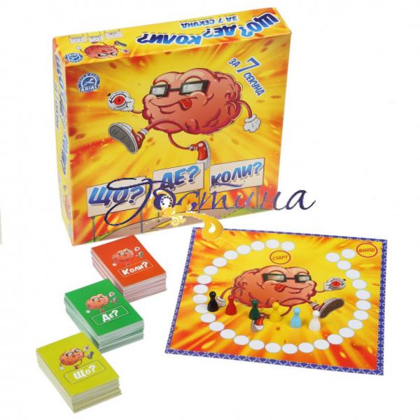 Суть гри дуже проста – потрібно відповісти на якомога більше питань протягом семи секунд. Питання може бути як легкі, і складні. Крім того, є порожні картки, де Ви можете записати свої запитання. Кожне питання дає різну кількість балів, вказаних на картці. За правильної відповіді бали зараховуються. Скільки балів отримав гравець, стільки клітин він пересуває свою фішку. Переможцем стає той гравець, який першим поставить свою фішку на клітку "ФІНІШ". Комплектація: ігрове поле, рулетка, комплект ігрових карток, 6 ігрових фішок. Вік 8+ років Кількість гравців 2-6 Година гри 20-40 хвилин