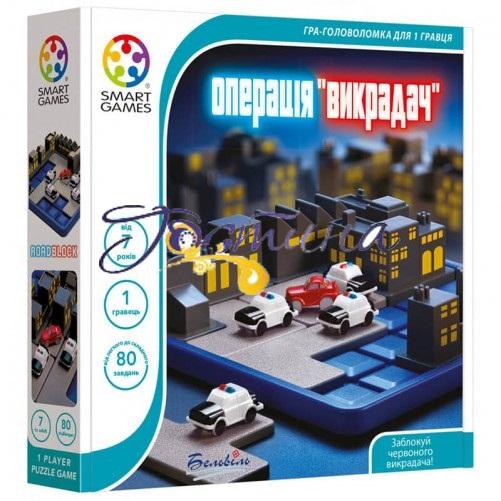 Настільна гра Операція Викрадач обіцяє багато цікавих пригод. Ваше завдання — скоординувати дії всіх поліцейських, перекрити рух, заблокувати червоний автомобіль і заарештувати злодія. Погоні як у кіно, тільки краще. 80 завдань, і є тільки одне правильне рішення кожного завдання!