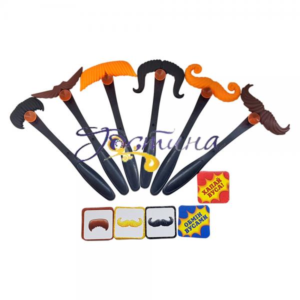 Кожен гравець отримує жартівливі вуса на спеціальній паличці з присоскою, Провідний перевертає по одній карті з колоди, де намальовані всі види вусів.