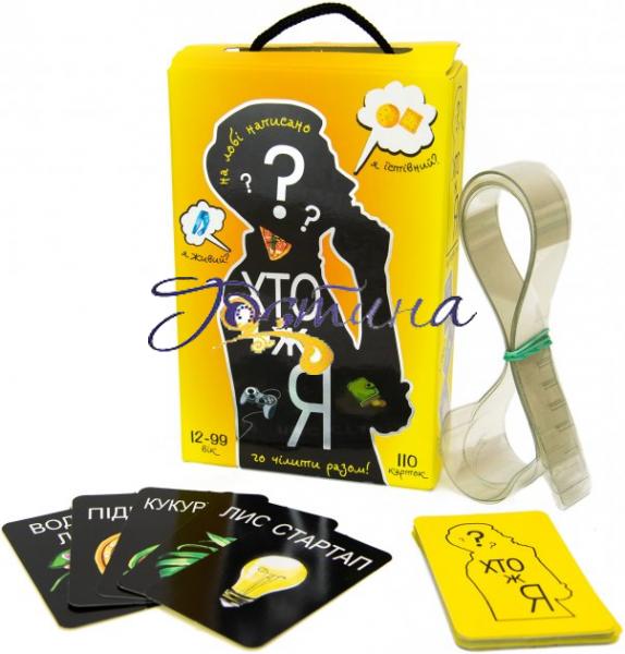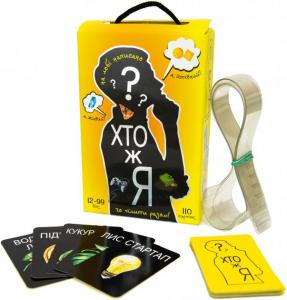 «Хто ж я?» — універсальна гра з простими правилами, яка ніколи не набридає. Суть гри в тому, щоб відгадати слово з картки. Ви маєте ставити запитання своїм суперникам, а вони можуть відповідати тільки «так» або «ні». Вгадаєш, хто ти зараз? Ти можеш виявитися рослиною, одягом або навіть соцмережею! Ми підготували 110 карток з абсолютно різними персонажами та предметами. Одягніть на голову спеціальний обруч, закріпіть картку, яка вам випала, й починайте гру! «Хто ж я?» чудово підійде для гри в компанії, де не всі знайомі між собою. На вечірці, у поїздці та на пікніку ви весело проведете час і краще пізнаєте один одного!