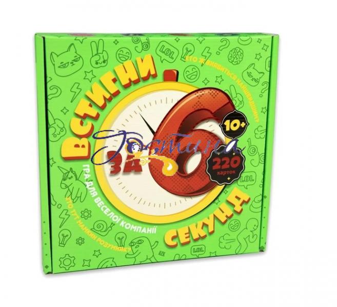 Що можна встигнути зробити за 6 секунд? Ляснути в долоні, зробити ковток лимонаду, глибоко вдихнути… Здається, що не так вже і багато. Але є дещо, що кожна людина може зробити дуже швидко – сказати дурницю перш, ніж подумати. Перед вами нестандартна настільна гра, де перемогу вирішить ваша зібраність та вміння миттєво підібрати відповіді на запитання. Гарантуємо – розумники будуть в захваті. Перевірте, на які запитання зможете відповісти саме ви!
