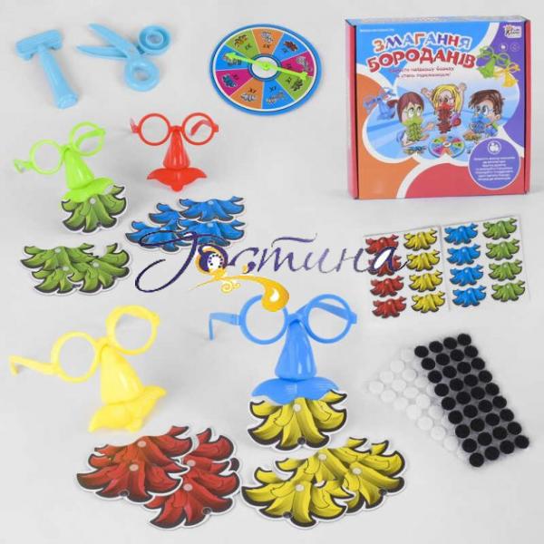 "Битва бороданів" - захоплююча гра, яка сподобається всім членам сім'ї. Мета гри - першим відростити саму довгу бороду. Перед початком гри всі гравці надягають пластикові вуса, до яких буде кріпитися борода. Хід гри вирішує рулетка долі, яка показує, яку дію повинен зробити гравець. Позбутися бороди можна за допомогою бритви та ножниць. Бритва - збриває всі отрощенные шматочки, а ножиці зрізують тільки один. Комплектація: - 4 пари окулярів з вусами; - 16 елементів бороди; - ножиці; - бритва; - рулетка; - липучки; - інструкція. Інструкція українською мовою. - довжина (см) 14 см - ширина (см) 13 см - висота(см) 13 см