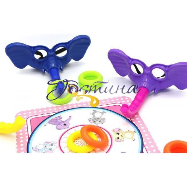Дитяча гра 'Elefant rings' це веселе заняття для невеликої компанії.  Суть гри в тому, що гравці одягають маски з хоботами слона, а на ігровому полі розташовані колечка такого ж кольору, як маски. Перший гравець, який збере на хобот все кільця під колір своєї маски виграє. Гра проходить дуже динамічно і цікаво, а таке проведення часу подарує кожному гравцеві багато приємних вражень. Кількість гравців: 2 - 3 чол. Упаковка: 31,5-26-8,5 см