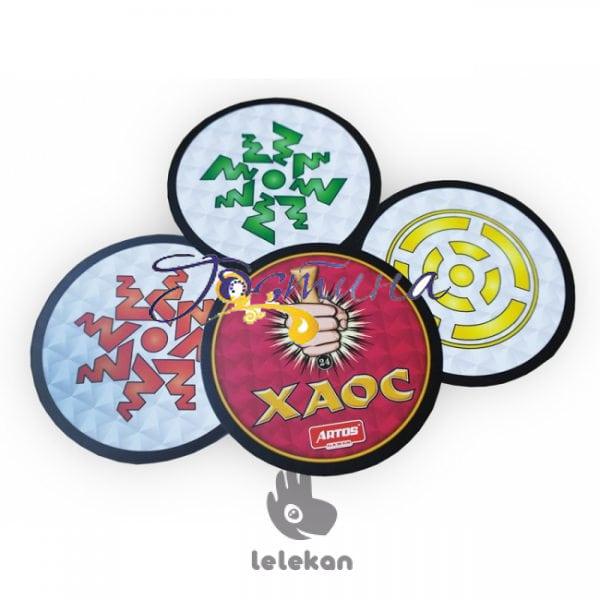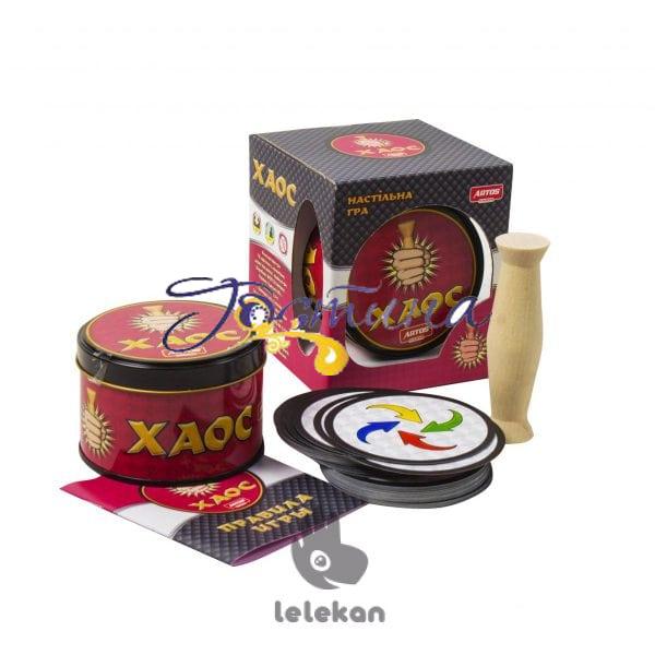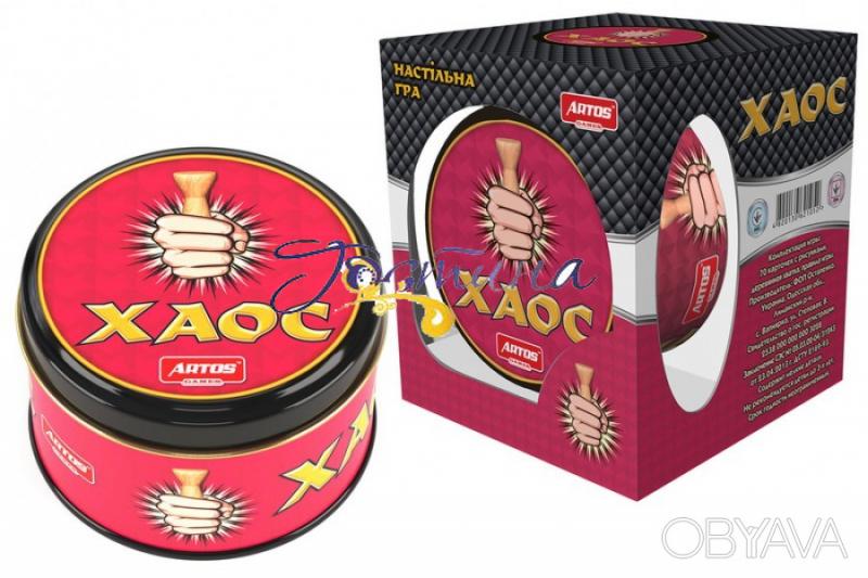Опис Захоплююча настільна динамічна гра. Гравці по черзі відкривають картки на яких зображені подібні фігури і за певних умов повинні першими схопити дерев'яний тотем. Блискавична реакція, спостережливість та гранична уважність - це саме ті якості, які допоможуть Вам отримати перемогу над суперником. Комплектація Хаос (Chaos) (Що в коробці?):70 круглих карток1 дерев'яний тотем1 правила гри