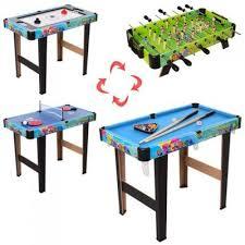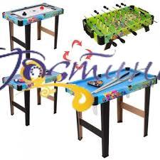 Набір настільних ігор 4в1 -Захоплююча гра для дітей і дорослих.В цій грі зібрані всі найпопулярніші настільні ігри футбол, пінг понг, аерохокей і більярд.Первий ігровий набір- футбол складається з ігрового поля, обрамленого бар'єром .Стол оснащений двома механічними лічильниками очок. Ергономічні пластикові ручки забезпечують зручне захоплення. На поле розташовуються дві футбольні команди по 11 гравців .Пінг понг- популярна гра і вид спорту даний стіл зроблений з пластика високої якості по середині ігрового поля натягнута сітка в комплекті до набору йдуть для кульки і ракетки.Аерохокей ще одна частина ігрового набору, в комплект йдуть дві ручки для відбивання шайб. Ідеальна іграшка для дітей, яким набридли стандартні настільні дії. Може розважити як пару друзів так і компанію діточок, які люблять активні ігри. За всіма зовнішніми параметрами, крім розмірів, його практично неможливо відрізнити від дорослого аналога. Зроблено якісно. Він також оснащений лузами і має гладку оксамитову поверхню. Більярд дитячий сподобається і дітям і їх батькам.Гра в більярд розвиває просторове мислення, витримку, чіткість рухів, влучність. Поставляється з комплектом аксессуаров.Характерістікі: Матеріал: пластик + деревоУпаковка: картонна коробка Розмір упаковки ДхШхВ: 78-42-14 см