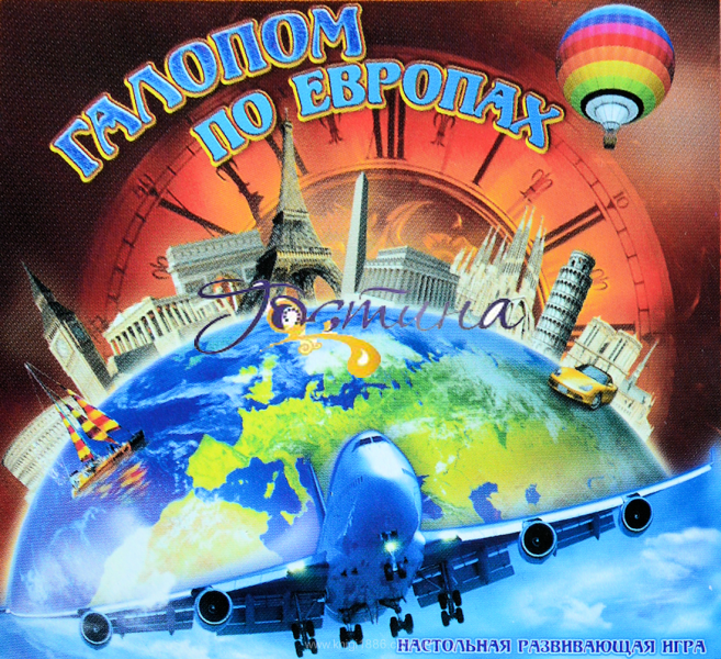 Галопом по Європах настільна розвиваюча гра. Гравцям необхідно як можна швидше пройти маршрут містами Європи, який вони самі складуть. При цьому вони будуть здійснювати перельоти між містами, а також рухатися автостопом від міста до міста. В результаті відвідування міст Європи, які позначені в маршруті, гравці будуть набирати рейтингові очки мандрівника. Мета гри-набрати 100 очок в рейтингу мандрівника. Якщо Ви любите проводити весело і з користю час то гра ГАЛОПОМ ПО ЄВРОПАХ саме для Вас! Ви можете придбати цю чудову розвиваючу гру у нас в магазині за найнижчою ціною! Комплектація гри : ігрове поле - 1 шт., гральні фішки - 4 шт., фішка - маркер - 4 шт., картки міст - 42 шт., авіаквитки - 16 шт., планшети рейсів - 4 шт., незаповнені планшети - 4 шт.