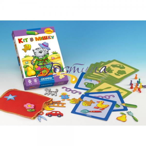 Настільна гра Кіт у мішку призначена як для одного гравця, так і для компанії до 6 осіб. В ході гри учасники повинні на дотик здогадатися, що саме вони дістають з мішка. Двосторонні карти з малюнками викладаються перед кожним гравцем однієї і тією ж стороною догори. Потім в мішечок складаються картонні фігурки предметів, і гравці по черзі на дотик повинні витягувати їх звідти. Якщо гравець витягує фігурку, зображення якої є на його карті, то фігурка кладеться зверху на карту, як в лото. В іншому випадку фігурка повертається в мішечок, і хід переходить до наступного гравця. Виграє той, хто перший заповнить фігурками свої карти.